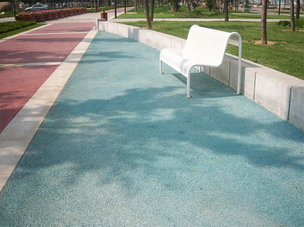 養(yǎng)護(hù):透水地坪由于存在大量的孔洞,易失水,干燥很快,所以養(yǎng)護(hù)非常重要,尤其是早期養(yǎng)護(hù),要注意避免地坪中水分大量蒸發(fā)。通常透水混凝土拆模時間比普通混凝土短,如此其側(cè)面和邊緣就會暴露于空氣中,應(yīng)用塑料薄膜或彩條布及時覆蓋路面和側(cè)面,以保證濕度和水泥充分水化。透水地坪應(yīng)在澆注后1天開始灑水養(yǎng)護(hù),淋水時不宜用壓力水柱直沖混凝土表面,這樣會帶走一些水泥漿,造成一些較薄弱的部位,但可在常態(tài)的情況下直接從上往下澆水。透水地坪的澆水養(yǎng)護(hù)時間應(yīng)不少于7天。