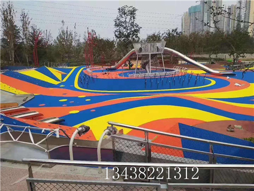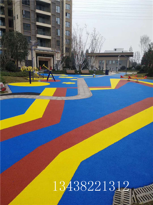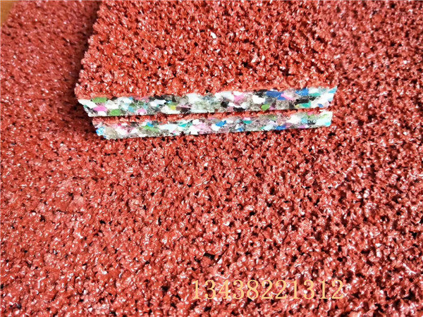 基礎(chǔ)構(gòu)成:三元乙丙黑顆粒層(10mm)+EPDM噴涂漿料面層(3mm )或EPDM彩色顆料(板壓)